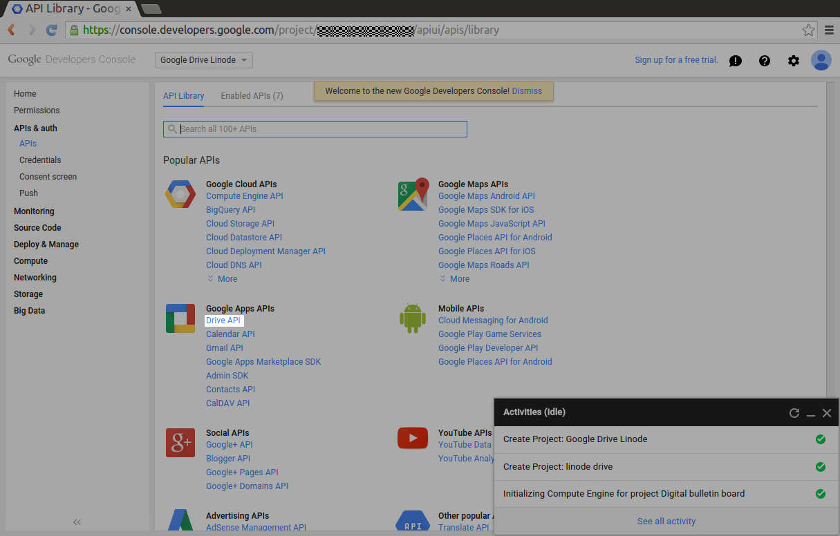 Visit the Google API developer’s console on your desktop at https://console.developers.google.com/project