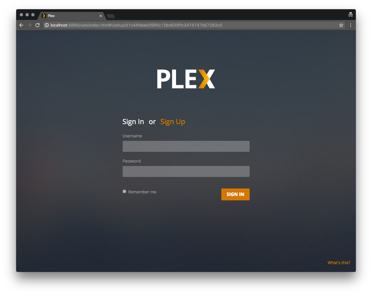 7. Go to http://localhost:8888/web in a web browser and log in to Plex.