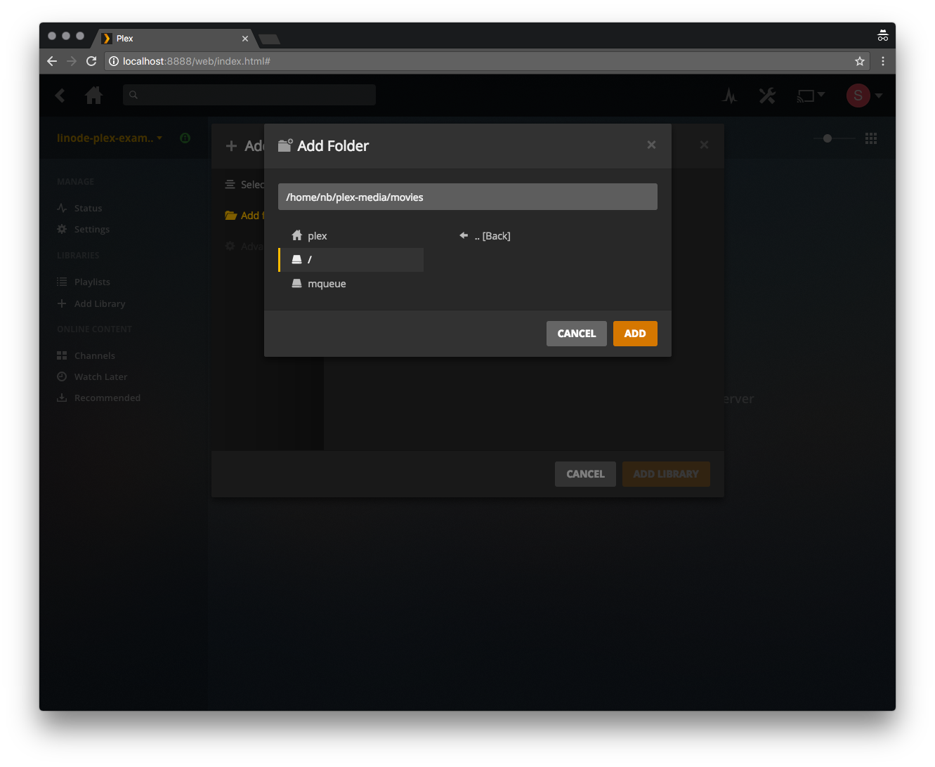 5. Add your media to the appropriate directories. Be sure to review Plex’s naming conventions for media files to ensure that your files are identified correctly.