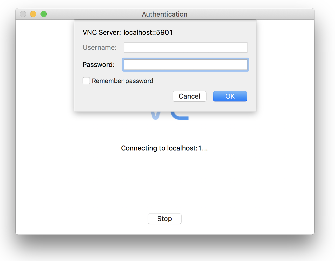 You will be prompted to enter the password you specified when first launching the VNC Server. See Secure your VNC Connection if you have not yet started a VNC server on your Linode.